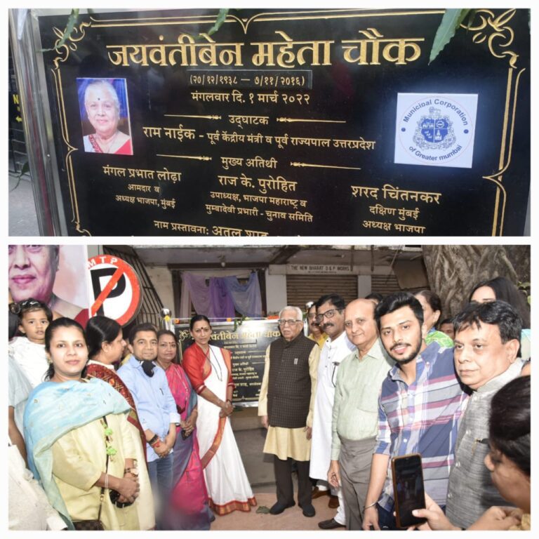 સ્થાનિક ભાજપના નગરસેવક અતુલ શાહના નેતૃત્વમાં તેમના વિસ્તારમાં આવેલા આ ચોકનું નામકરણ ભૂતપૂર્વ કેન્દ્રીય પ્રધાન અને ઉત્તર પ્રદેશના ભૂતપૂર્વ રાજ્યપાલ રામ નાઈકના હસ્તે કરવામાં આવ્યું હતું. એ પ્રસંગે ભાજપના અનેક નેતાઓ, કાર્યકર્તાઓ હાજર રહ્યા હતા.