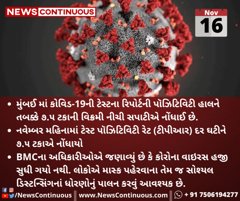 ખુશ ખબર, મુંબઈમાં કોરોના ટેસ્ટનો પૉઝિટિવિટી રેટ અડધો થયો