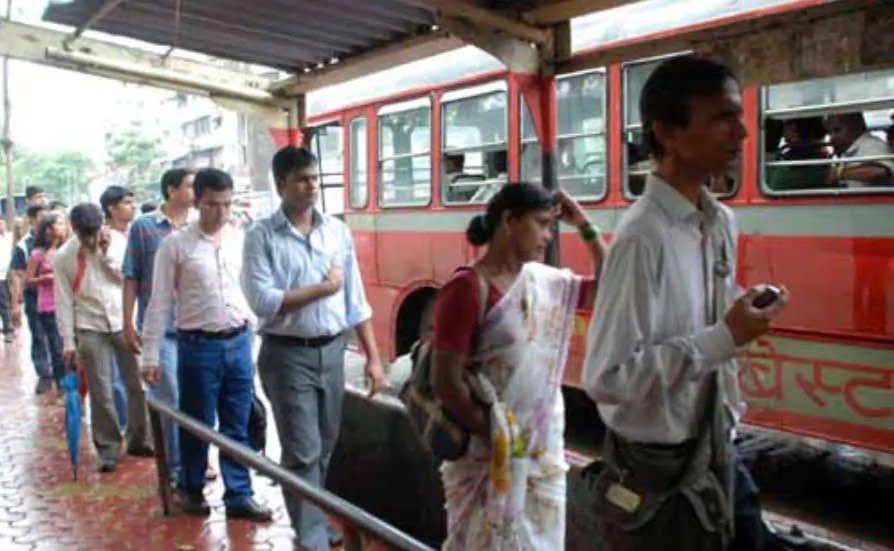 કોરોનાને પગલે સામાન્ય નાગરિકોને લોકલ ટ્રેનમાં પ્રવાસ કરવા પર પ્રતિબંધ છે. લોકોને નોકરી-ધંધાએ પહોંચવા માટે મજબૂરીમાં બેસ્ટની બસનો સહારો લેવો પડી રહ્યો છે. લોકોને બસ માટે કલાકો સુધી રાહ જોવી પડતી હોય છે. પ્રવાસીઓની ભીડ સામે બેસ્ટની બસની સંખ્યા પણ ઓછી પડી રહી છે. એટલું ઓછું હોય એમ રસ્તા પર બસની રાહ જોતા લાઇન સવારના પિક અવર્સમાં તો એક કિલોમીટર લાંબી થઈ જતી હોય છે. એવી પરિસ્થિતમાં મંગળવારે સવારના ઘાટકોપર રેલવે સ્ટેશનની બહાર (વેસ્ટ)માં રૂટ નંબર 421 નંબરની બસની રાહ જોતા પ્રવાસીઓની હાલત થઈ ગઈ હતી. લાઇનમાં ઊભા રહેલા પ્રવાસીઓનો  લગભગ એકથી દોઢ કલાકે બસમાં નંબરે આવતો હતો. પરિસ્થિતિ એટલી હદે ખરાબ હતી કે લાઇન એટલી લાંબી થઈ ગઈ હતી કે આ લાઇન રેલવે પ્લૅટફૉર્મ સુધી પહોંચી ગઈ હતી. બાદમાં આ જ લાઇન ધીમે-ધીમે વધતી ગઈ હતી, જે છેક રેલવે બ્રિજની ઉપર સુધી પહોંચી ગઈ હતી.