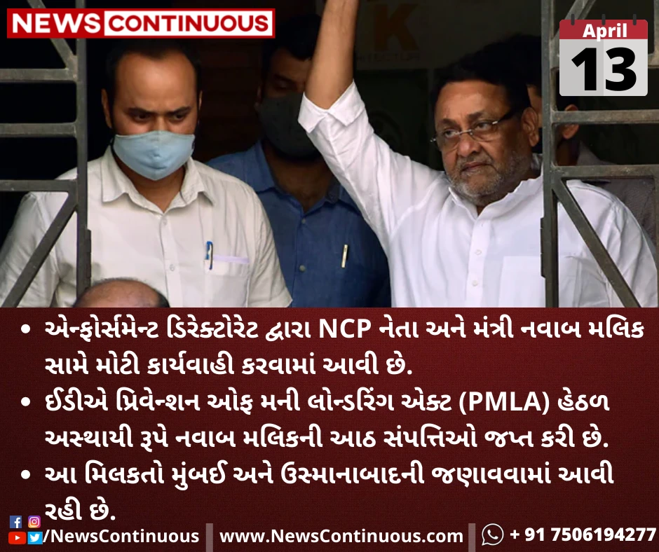 એન્ફોર્સમેન્ટ ડિરેક્ટોરેટ(ED) દ્વારા NCP નેતા અને મંત્રી નવાબ મલિક(Nawab Malik) સામે મોટી કાર્યવાહી કરવામાં આવી છે.