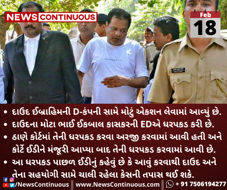 દાઉદના મોટા ભાઈ ઈકબાલ કાસકરની EDએ ધરપકડ કરી છે.