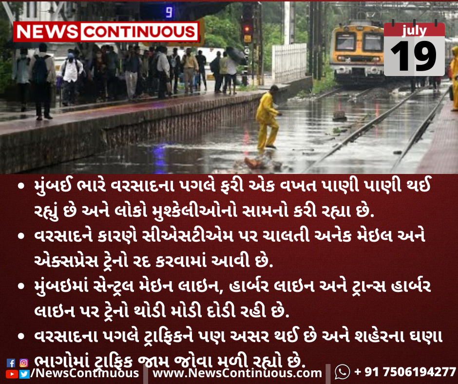 મુંબઈ ભારે વરસાદના પગલે ફરી એક વખત પાણી પાણી થઈ રહ્યું છે અને લોકો મુશ્કેલીઓનો સામનો કરી રહ્યા છે.