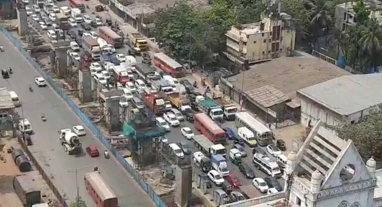ગોરેગાવ થી બોરીવલી ની વચ્ચે હાઇવે પર ભારે ટ્રાફિક દેખાઈ રહ્યો હતો.