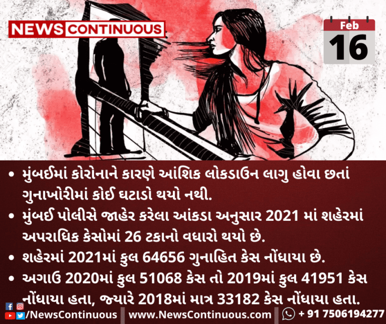 મુંબઈમાં કોરોનાને કારણે આંશિક લોકડાઉન લાગુ હોવા છતાં ગુનાખોરીમાં કોઈ ઘટાડો થયો નથી.