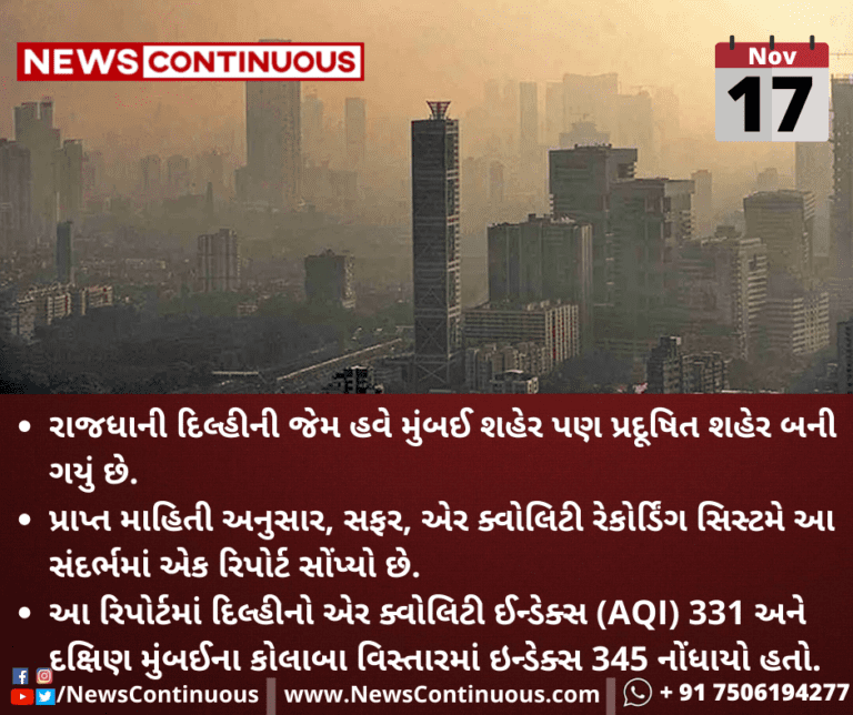 રાજધાની દિલ્હીની જેમ હવે મુંબઈ શહેર પણ પ્રદૂષિત શહેર બની ગયું છે.