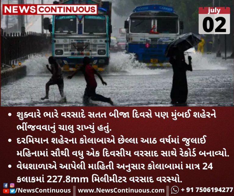 શુક્વારે ભારે વરસાદે(Heavy rain) સતત બીજા દિવસે પણ મુંબઈ(Mumbai) શહેરને ભીંજવવાનું ચાલુ રાખ્યું હતું.