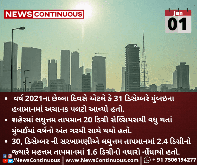 વર્ષ 2021ના છેલ્લા દિવસે એટલે કે 31 ડિસેમ્બરે મુંબઇના હવામાનમાં અચાનક પલટો આવ્યો હતો.