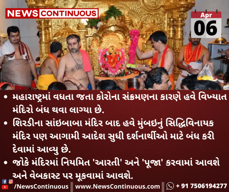 મહારાષ્ટ્રમાં વધતા જતા કોરોના સંક્રમણના કારણે હવે વિખ્યાત મંદિરો બંધ થવા લાગ્યા છે.