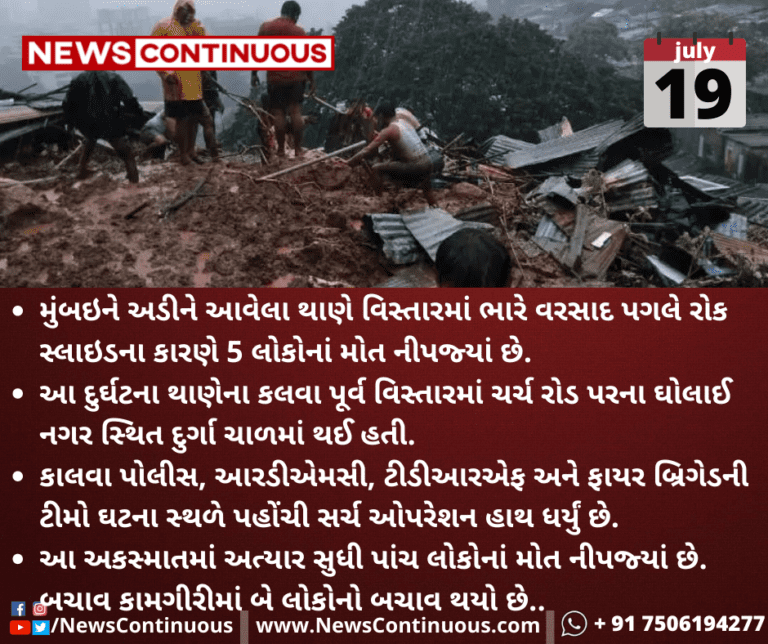મુંબઇને અડીને આવેલા થાણે વિસ્તારમાં ભારે વરસાદ પગલે રોક સ્લાઇડના કારણે 5 લોકોનાં મોત નીપજ્યાં છે.