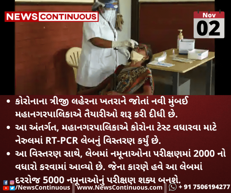આ તૈયારી અંતર્ગત, મહાનગરપાલિકાએ કોરોના ટેસ્ટ વધારવા માટે નેરુલમાં RT-PCR લેબનું વિસ્તરણ કર્યું છે.