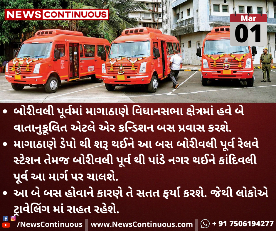 બોરીવલી પૂર્વમાં માગાઠાણે વિધાનસભા ક્ષેત્રમાં હવે બે વાતાનુકૂલિત એટલે એર કન્ડિશન બસ પ્રવાસ કરશે.