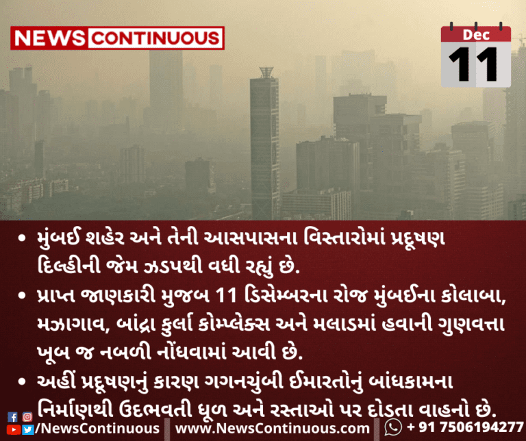 આ તમામ કારણોને લીધે મુંબઈમાં પ્રદૂષણ સતત વધી રહ્યું છે. ટૂંક સમયમાં એવો સમય આવી શકે છે જ્યારે મુંબઈ પ્રદૂષણના મામલે દિલ્હી સાથે સ્પર્ધા કરવાનું શરૂ કરશે.