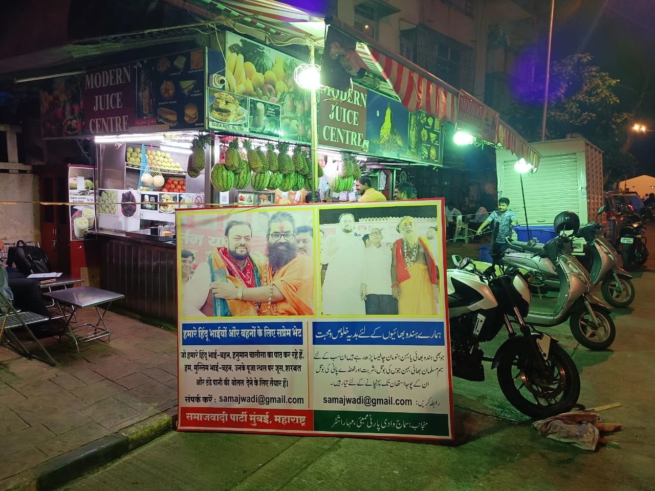 અબુ આઝમી દ્વારા મુકવામાં આવેલ પોસ્ટરમાં હિન્દુ સંતો અને મહંતોની તસવીર જોવા મળે છે. પોસ્ટરમાં લખવામાં આવ્યું છે કે તેમના પૂજા સ્થાન પર હનુમાન ચાલીસાનો પાઠ કરતા હિન્દુ ભાઈઓ અને બહેનોને તેઓ ઠંડા પીણા, શરબત, પાણી મોકલશે. સંપર્ક કરવા માટે પક્ષનો ઈમેલ આઈડી પણ હોર્ડિંગ્સ પર લખવામાં આવ્યો છે.