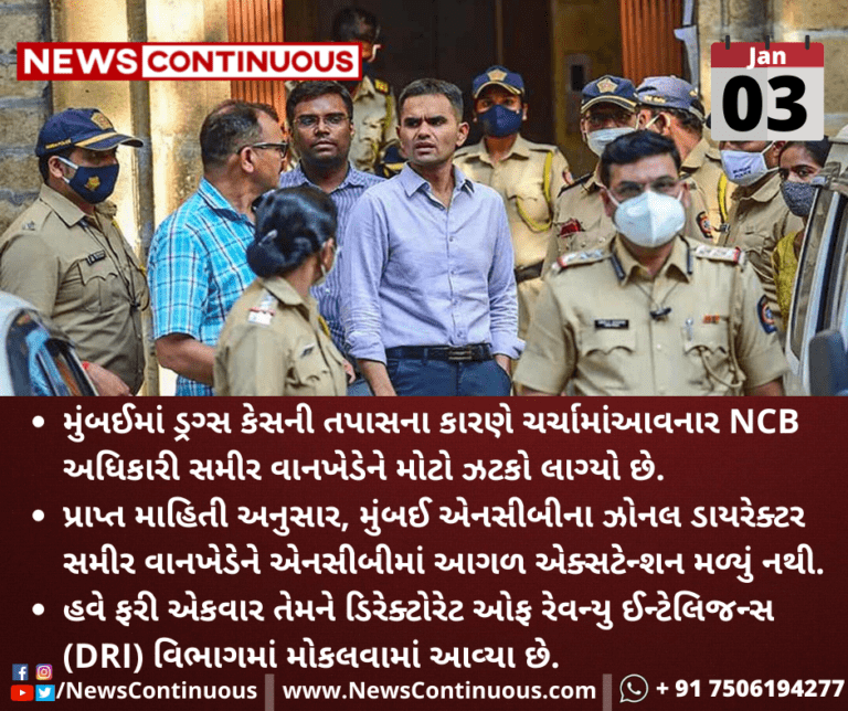 પ્રાપ્ત માહિતી અનુસાર, મુંબઈ એનસીબીના ઝોનલ ડાયરેક્ટર સમીર વાનખેડેને એનસીબીમાં આગળ એક્સટેન્શન મળ્યું નથી.
