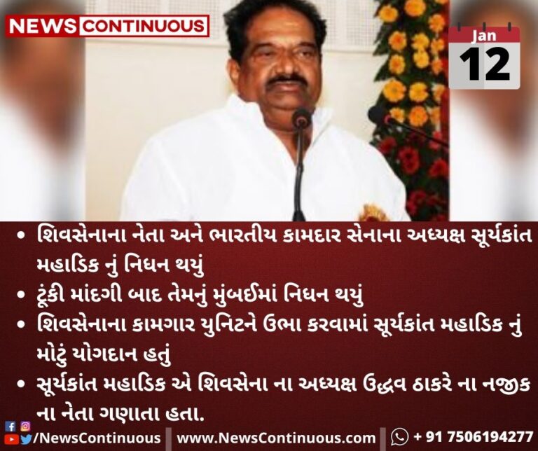 શિવસેનાના નેતા અને ભારતીય કામદાર સેનાના અધ્યક્ષ સૂર્યકાંત મહાડિક નું નિધન થયું.