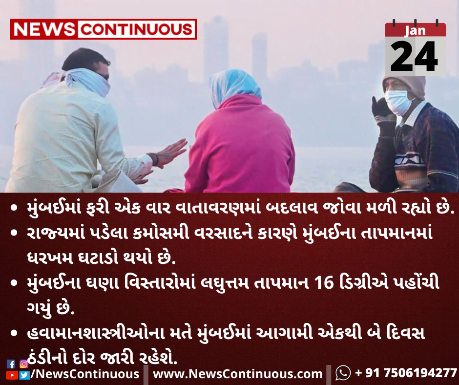 મુંબઈમાં સામાન્ય રીતે બહુ ઠંડી હોતી નથી પરંતુ કમોસમી વરસાદને કારણે તાપમાનમાં ભારે ઘટાડો થયો છે.