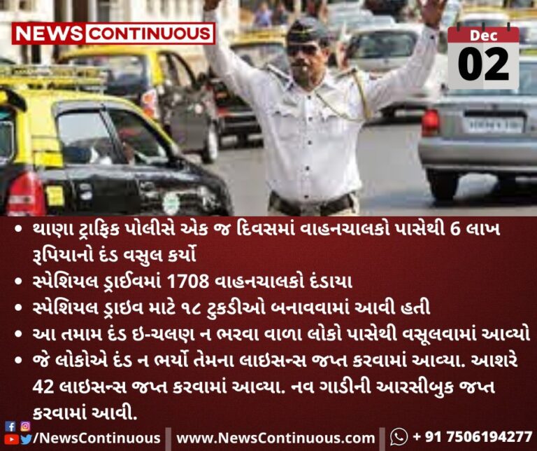 મુંબઈવાસીઓ જો તમે ઈ-ચલણ ન ભર્યું હોય તો સાવધાન થઈ જજો. થાણા માં આ કાર્યવાહી થઈ છે. હવે મુંબઈ નો વારો છે. જાણો વિગત…