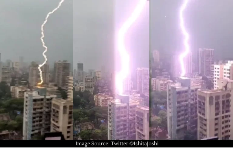 મુંબઈમાં ગુરુવારે સાંજે ભારે વરસાદ પડ્યો હતો, જેના કારણે શહેરના કેટલાક ભાગોમાં રોડ અને રેલ ટ્રાફિક ખોરવાઈ ગયો હતો. દરમિયાન ઘણા લોકોએ મુંબઈમાં વરસાદ અને વીજળીની તસવીરો અને વીડિયો પોસ્ટ કર્યા છે. એવો જ એક વીડિયોમાં મુંબઈના બોરીવલી પશ્ચિમ વિસ્તારમાં વીજળી પડતી હોય તેવું દેખાય રહ્યું છે. વિડીયોના કેપ્શન અનુસાર, નેમિનાથ બિલ્ડિંગ પર વીજળી પડી હતી પરંતુ ત્યાં કોઈ નુકસાન થયું નથી.