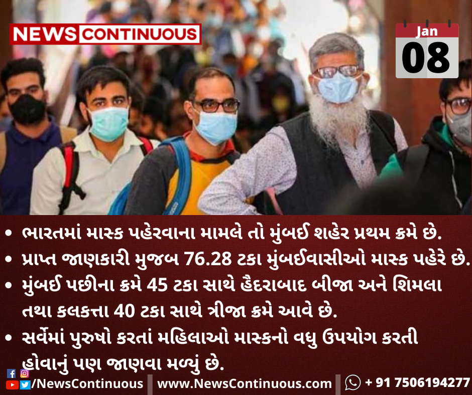 ભારતમાં માસ્ક પહેરવાના મામલે તો મુંબઈગરાઓ પ્રથમ ક્રમે છે.