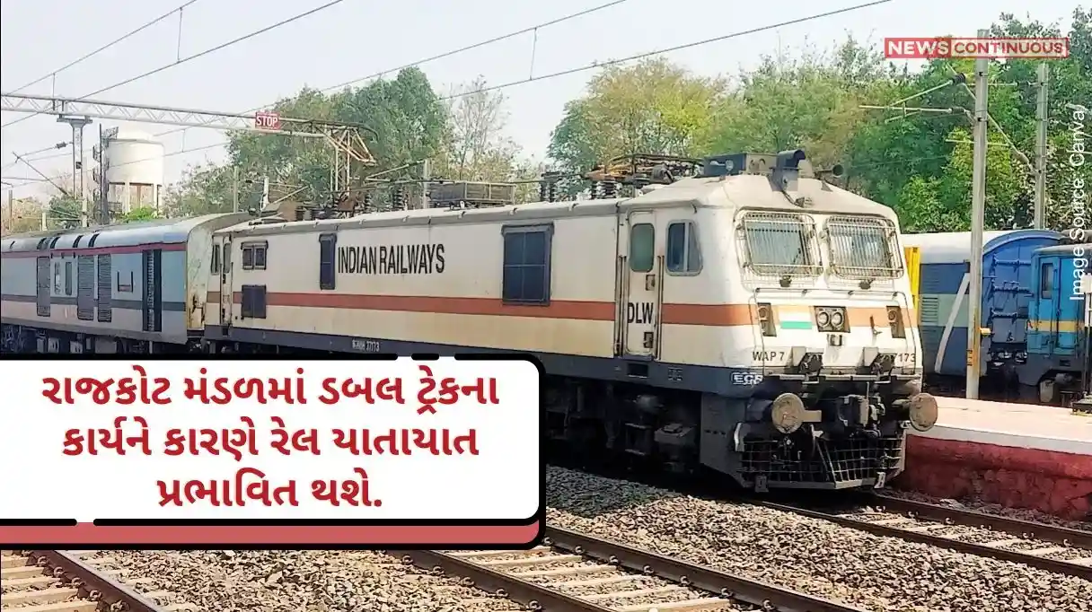 Rail traffic: રાજકોટ મંડળના ( Rajkot Mandal ) રાજકોટ-ખાંડેરી-પડધરી સેક્શનમાં ડબલ ટ્રેકના કાર્ય માટે 9 જૂનથી 29 જૂન, 2024 સુધી બ્લોક લેવામાં આવશે, જેના કારણે અમદાવાદ મંડળમાંથી ( Ahmedabad Mandal ) ચાલતી/પસાર થતી કેટલીક ટ્રેનો પ્રભાવિત થશે. આ ટ્રેનોની વિગતો નીચે મુજબ છે.