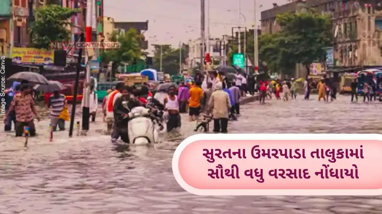 Surat Rain : ગુજરાતમાં છેલ્લા ૨૪ કલાક દરમિયાન સુરત ( Surat ) જિલ્લાના ઉમરપાડા તાલુકામાં સૌથી વધુ ૧૧ ઇંચ પલસાણા તાલુકામાં ૧૦ ઇંચ વરસાદ તેમજ નવસારી ખેરગામ તાલુકામાં ૯ ઇંચ વરસાદ નોંધાયો છે. જ્યારે જૂનાગઢના વિસાવદર તાલુકામાં ૮ ઇંચ અને સુરત જિલ્લાના કામરેજ અને બારડોલી તાલુકામાં ૮-૮ ઇંચ વરસાદ અને દેવભૂમિ દ્વારકાના દ્વારકા તાલુકામાં ૮ ઇંચ વરસાદ નોંધાયાના અહેવાલો છે. આ ઉપરાંત ડાંગ જિલ્લાના વઘઈ તાલુકામાં ૭ ઇંચ અને તાપી જિલ્લાના વ્યારા તાલુકામાં ૭ ઇંચ વરસાદ નોંધાયો છે.