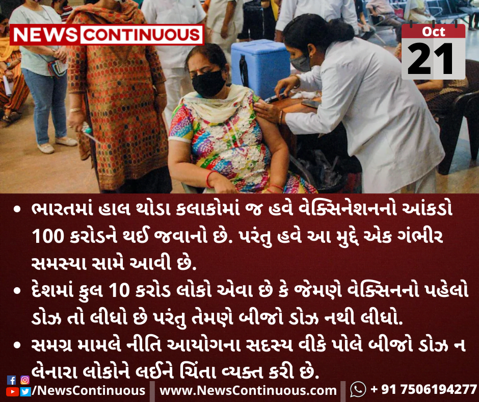 દેશમાં કુલ 10 કરોડ લોકો એવા છે કે જેમણે વેક્સિનનો પહેલો ડોઝ તો લીધો છે પરંતુ તેમણે બીજો ડોઝ નથી લીધો.