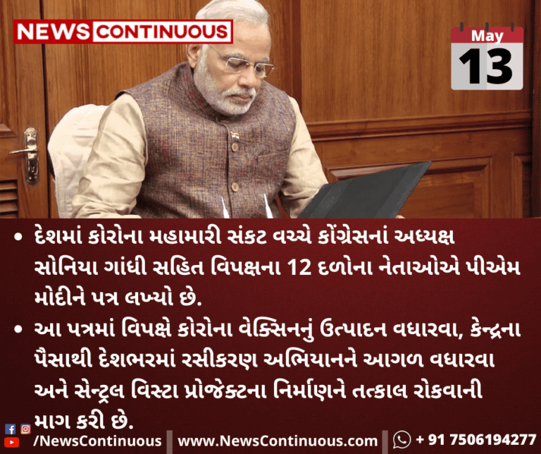 આ પત્રમાં વિપક્ષે કોરોના વેક્સિનનું ઉત્પાદન વધારવા, કેન્દ્રના પૈસાથી દેશભરમાં રસીકરણ અભિયાનને આગળ વધારવા અને સેન્ટ્રલ વિસ્ટા પ્રોજેક્ટના નિર્માણને તત્કાલ રોકવાની માગ કરી છે.