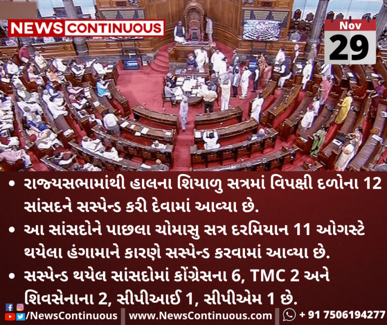 રાજ્યસભામાંથી હાલના શિયાળુ સત્રમાં વિપક્ષી દળોના 12 સાંસદને સસ્પેન્ડ કરી દેવામાં આવ્યા છે.