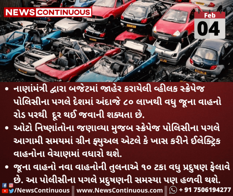 બજેટમાં આ પોલીસીની જાહેરાત બાદ ઓટો ક્ષેત્રમાં નવી માંગ નીકળવાના આશાવાદે ધમધમાટ વધ્યો છે.