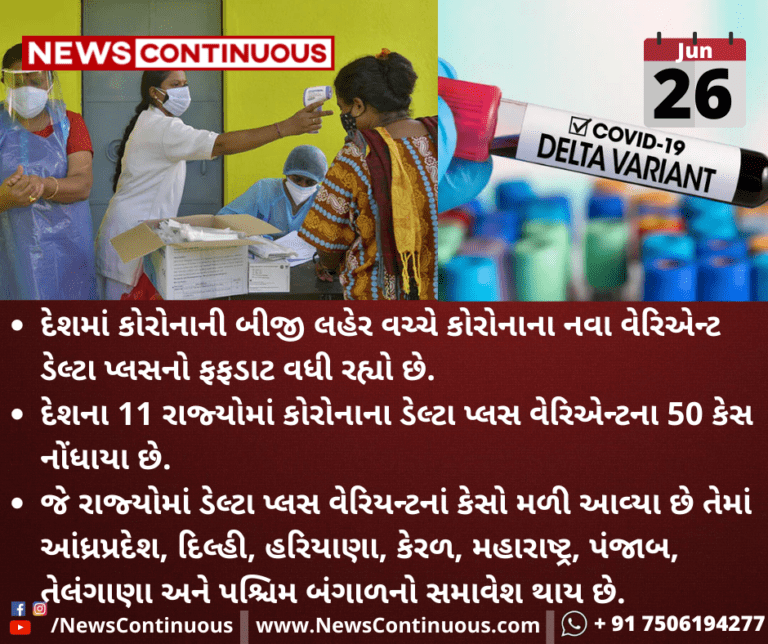 દેશમાં કોરોનાની બીજી લહેર વચ્ચે કોરોનાના નવા વેરિએન્ટ ડેલ્ટા પ્લસનો ફફડાટ વધી રહ્યો છે.
