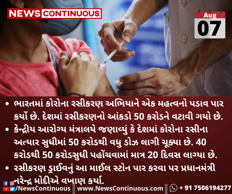 દેશમાં રસીકરણનો આંકડો 50 કરોડને વટાવી ગયો છે.