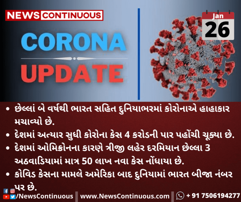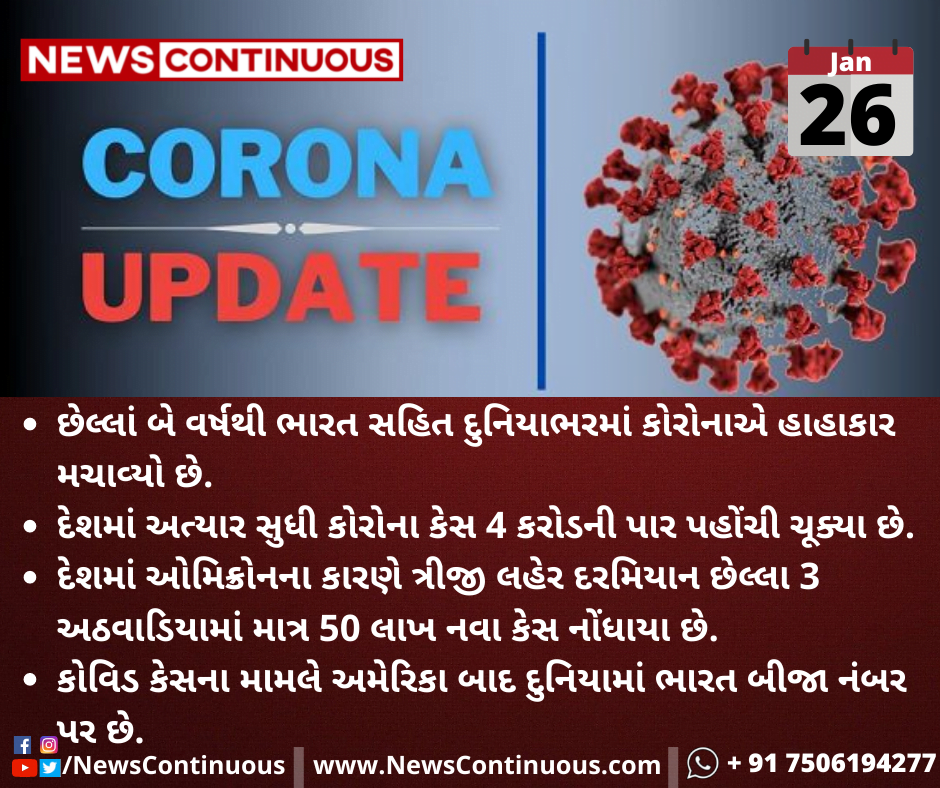 દેશમાં અત્યાર સુધી કોરોનાના કેસ 4 કરોડની પાર પહોંચી ચૂક્યા છે.
