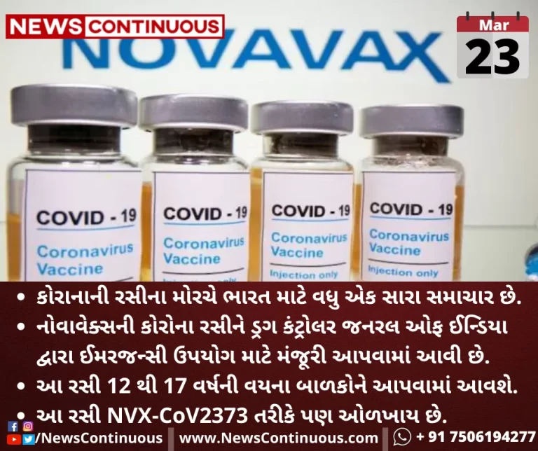 નોવાવેક્સની કોરોના રસીને ડ્રગ કંટ્રોલર જનરલ ઓફ ઈન્ડિયા દ્વારા ઈમરજન્સી ઉપયોગ માટે મંજૂરી આપવામાં આવી છે.