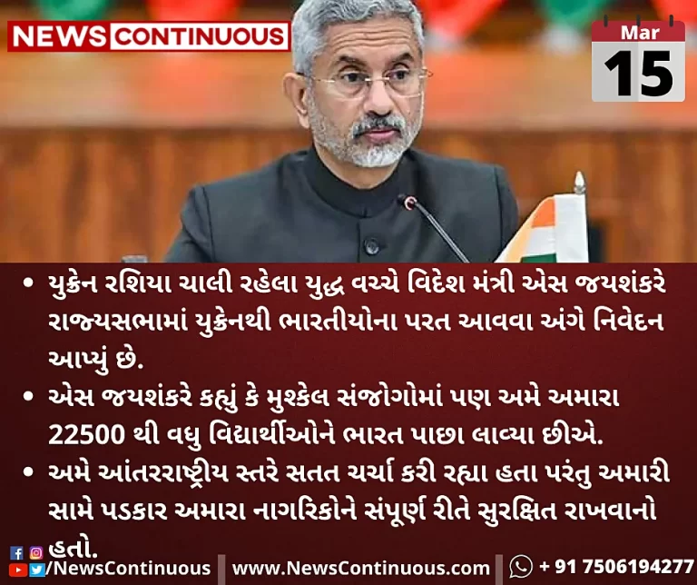 યુક્રેન રશિયા ચાલી રહેલા યુદ્ધ વચ્ચે વિદેશ મંત્રી એસ જયશંકરે રાજ્યસભામાં યુક્રેનથી ભારતીયોના પરત આવવા અંગે નિવેદન આપ્યું છે.