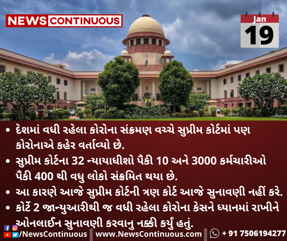 કોર્ટે 2 જાન્યુઆરીથી જ વધી રહેલા કોરોના કેસને ધ્યાનમાં રાખીને ઓનલાઈન સુનાવણી કરવાનુ નક્કી કર્યું હતું.