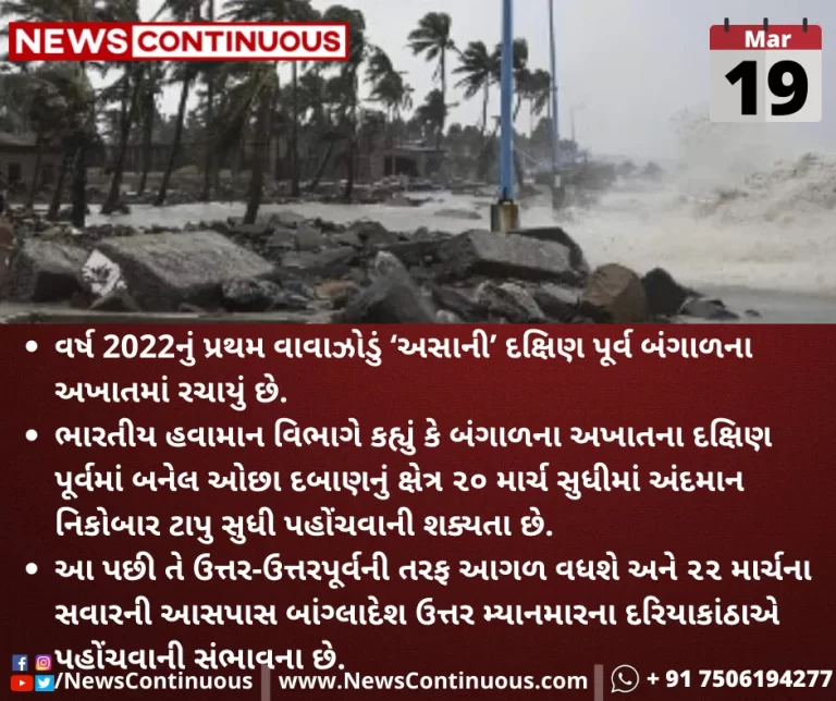 વર્ષ 2022નું પ્રથમ વાવાઝોડું ‘અસાની’ દક્ષિણ પૂર્વ બંગાળના અખાતમાં રચાયું છે.