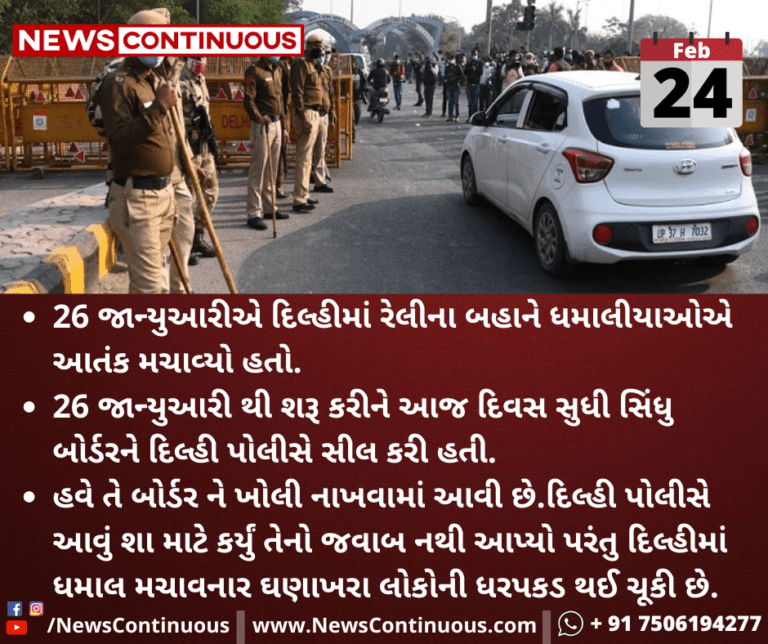 26 જાન્યુઆરી થી શરૂ કરીને આજ દિવસ સુધી સિંધુ બોર્ડરને દિલ્હી પોલીસે સીલ કરી હતી. હવે તે બોર્ડર ને ખોલી નાખવામાં આવી છે.