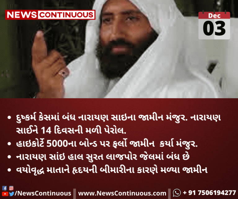 દુષ્કર્મ કેસ ના આરોપી, નારાયણ સાઈ ના જામીન મંજુર