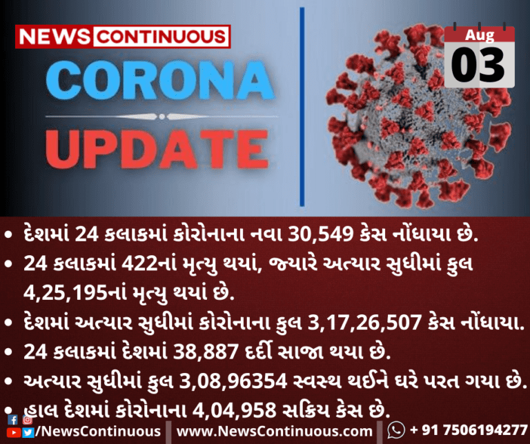 દેશમાં અત્યાર સુધીમાં કોરોનાના કુલ 3,17,26,507 કેસ નોંધાયા.