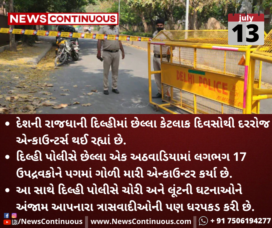 દિલ્હી પોલીસે છેલ્લા એક અઠવાડિયામાં લગભગ 17 ઉપદ્રવકોને પગમાં ગોળી મારી એન્કાઉન્ટર કર્યા છે.
