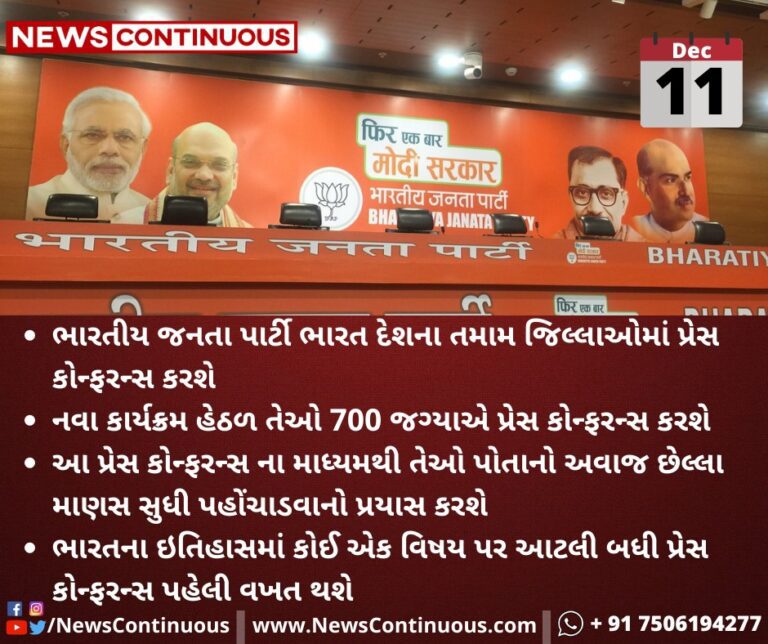 - ભારતીય જનતા પાર્ટી ભારત દેશના તમામ જિલ્લાઓમાં પ્રેસ કોન્ફરન્સ કરશે