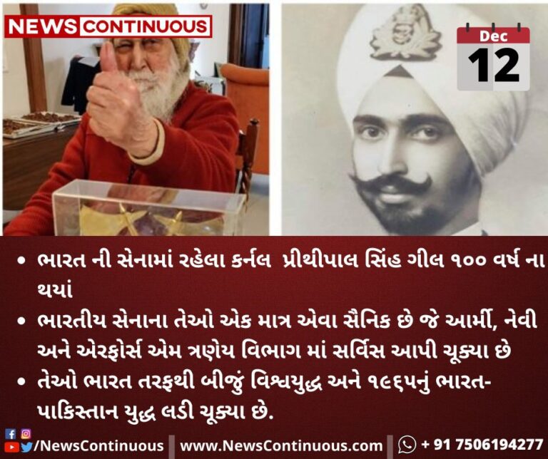 ભારત ની સેનામાં રહેલા કર્નલ પ્રીથીપાલ સિંહ ગીલ ૧૦૦ વર્ષ ના થયાં