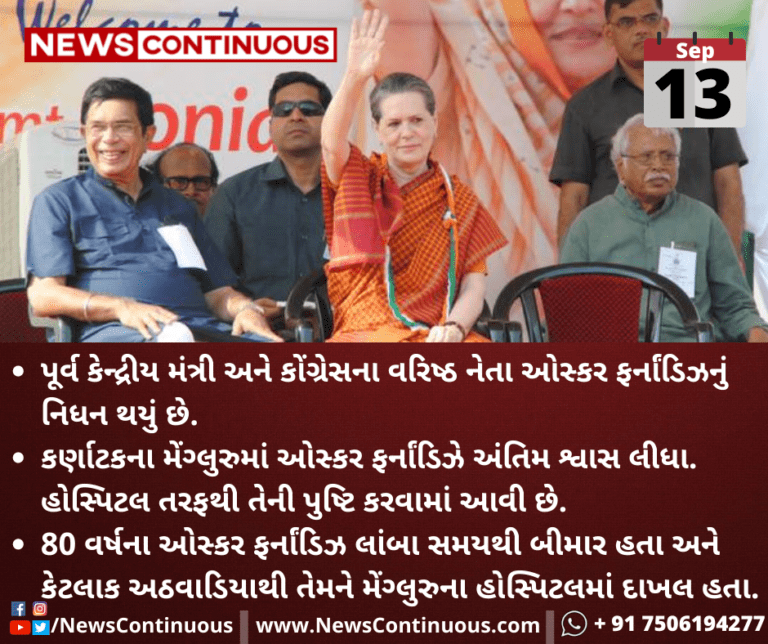 પૂર્વ કેન્દ્રીય મંત્રી અને કોંગ્રેસના વરિષ્ઠ નેતા ઓસ્કર ફર્નાંડિઝનું નિધન થયું છે.