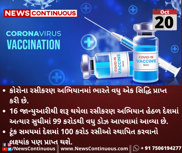 ટૂંક સમયમાં દેશમાં 100 કરોડ રસીઓ સ્થાપિત કરવાનો લક્ષ્યાંક પણ પ્રાપ્ત થશે.