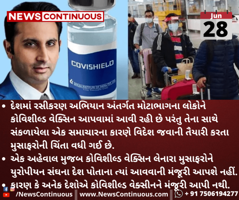 એક અહેવાલ મુજબ કોવિશીલ્ડ વેક્સિન લેનારા મુસાફરોને યુરોપીયન સંઘના દેશ પોતાના ત્યાં આવવાની મંજૂરી આપશે નહીં.