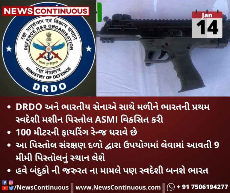 DRDO અને ભારતીય સેનાએ સાથે મળીને ભારતની પ્રથમ સ્વદેશી મશીન પિસ્તોલ ASMI વિકસિત કરી
