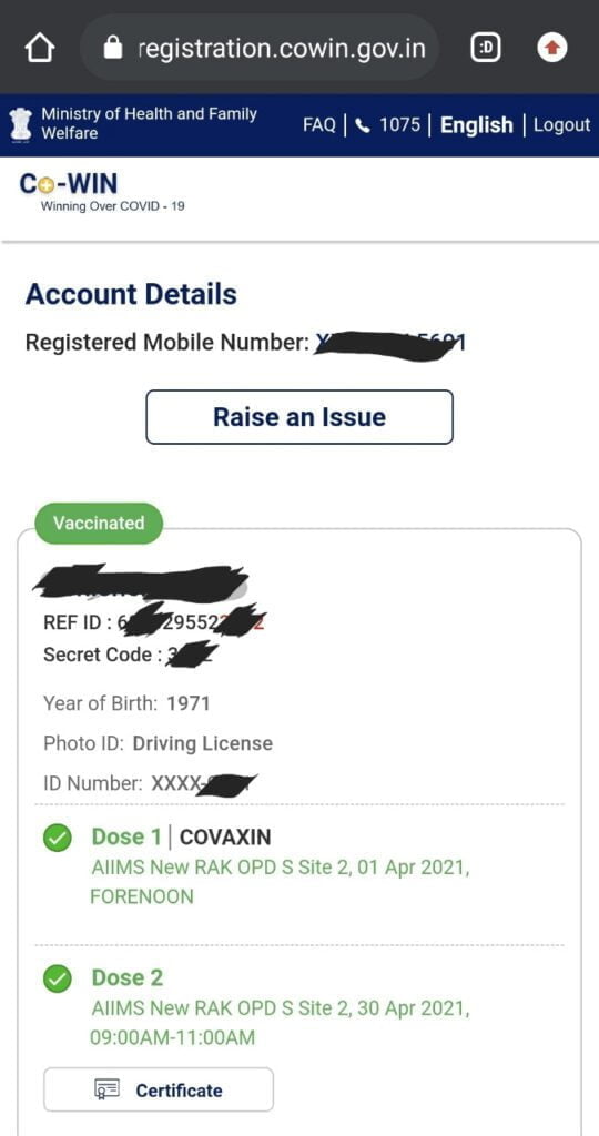 આંતરરાષ્ટ્રીય અને ઘરેલુ મુસાફરી માટેના દસ્તાવેજમાં રસીકરણ સર્ટિફિકેટ એક મહત્ત્વનો દસ્તાવેજ છે. એથી આપ ઉપર આપેલી રીત મુજબ આ ભૂલ સુધારી શકો છો.