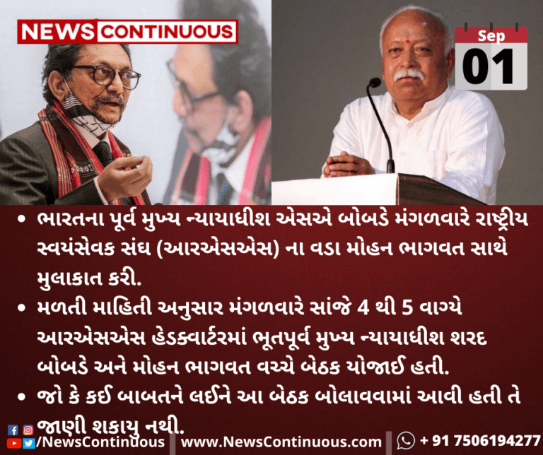મળતી માહિતી અનુસાર મંગળવારે સાંજે 4 થી 5 વાગ્યે આરએસએસ હેડક્વાર્ટરમાં ભૂતપૂર્વ મુખ્ય ન્યાયાધીશ શરદ બોબડે અને મોહન ભાગવત વચ્ચે બેઠક યોજાઈ હતી.