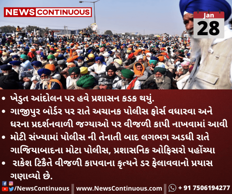 ગાજીપુર બોર્ડર પર રાતે અચાનક પોલીસ ફોર્સ વધારવા અને ધરના પ્રદર્શનવાળી જગ્યાઓ પર વીજળી કાપી નાખવામાં આવી