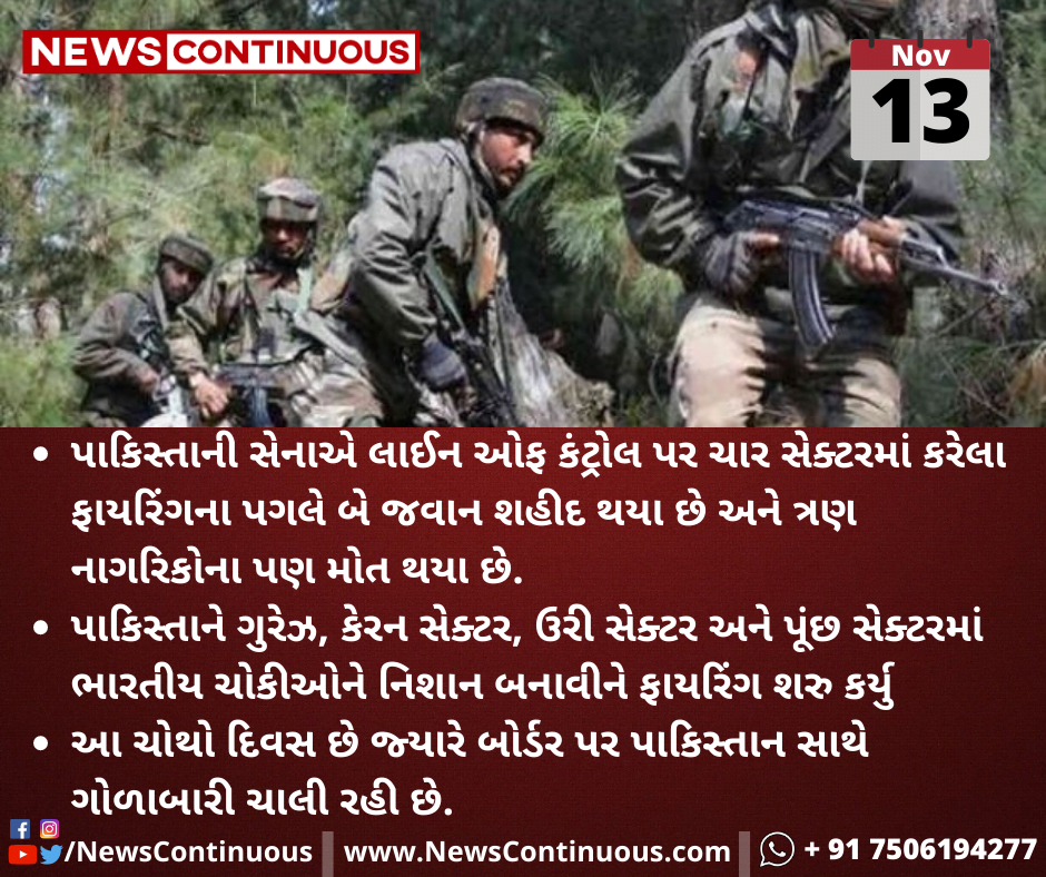 ચાર દિવસથી પાકિસ્તાનનુ ફાયરિંગ, બે જવાનો શહીદ, ત્રણ નાગરિકોના પણ મોત. જાણો વિગત